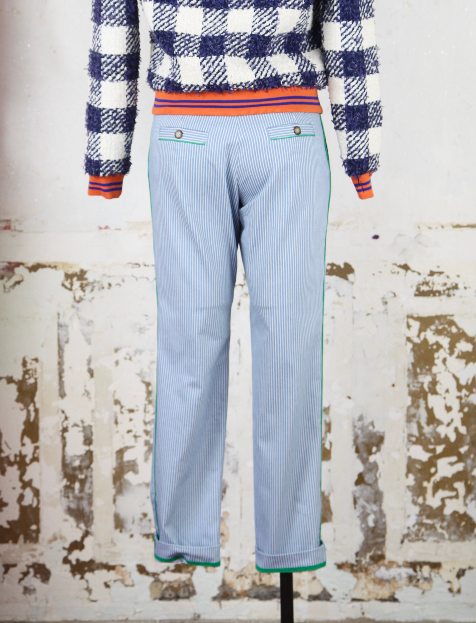 Pantalon en toile Denim Jacquard Rayé .