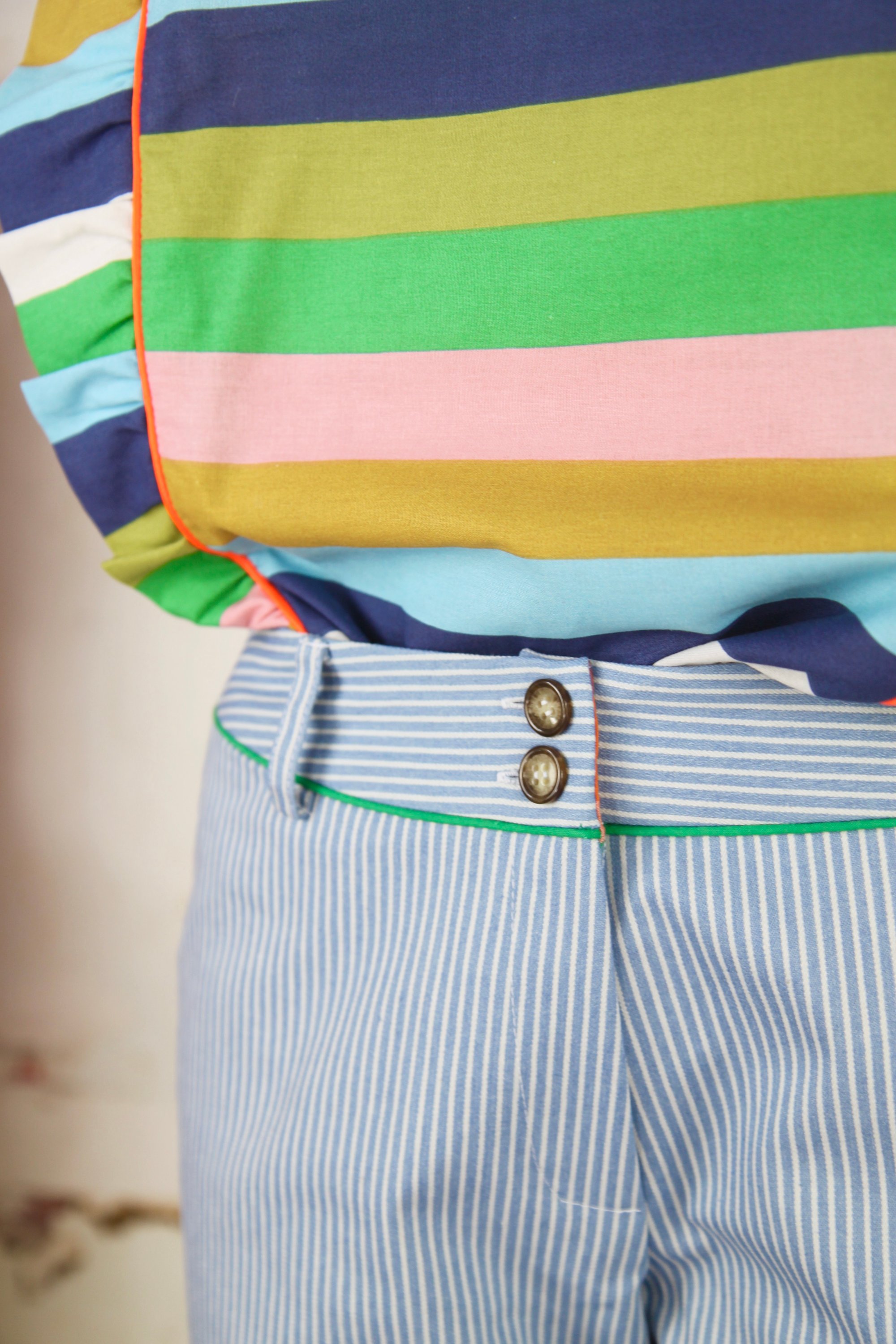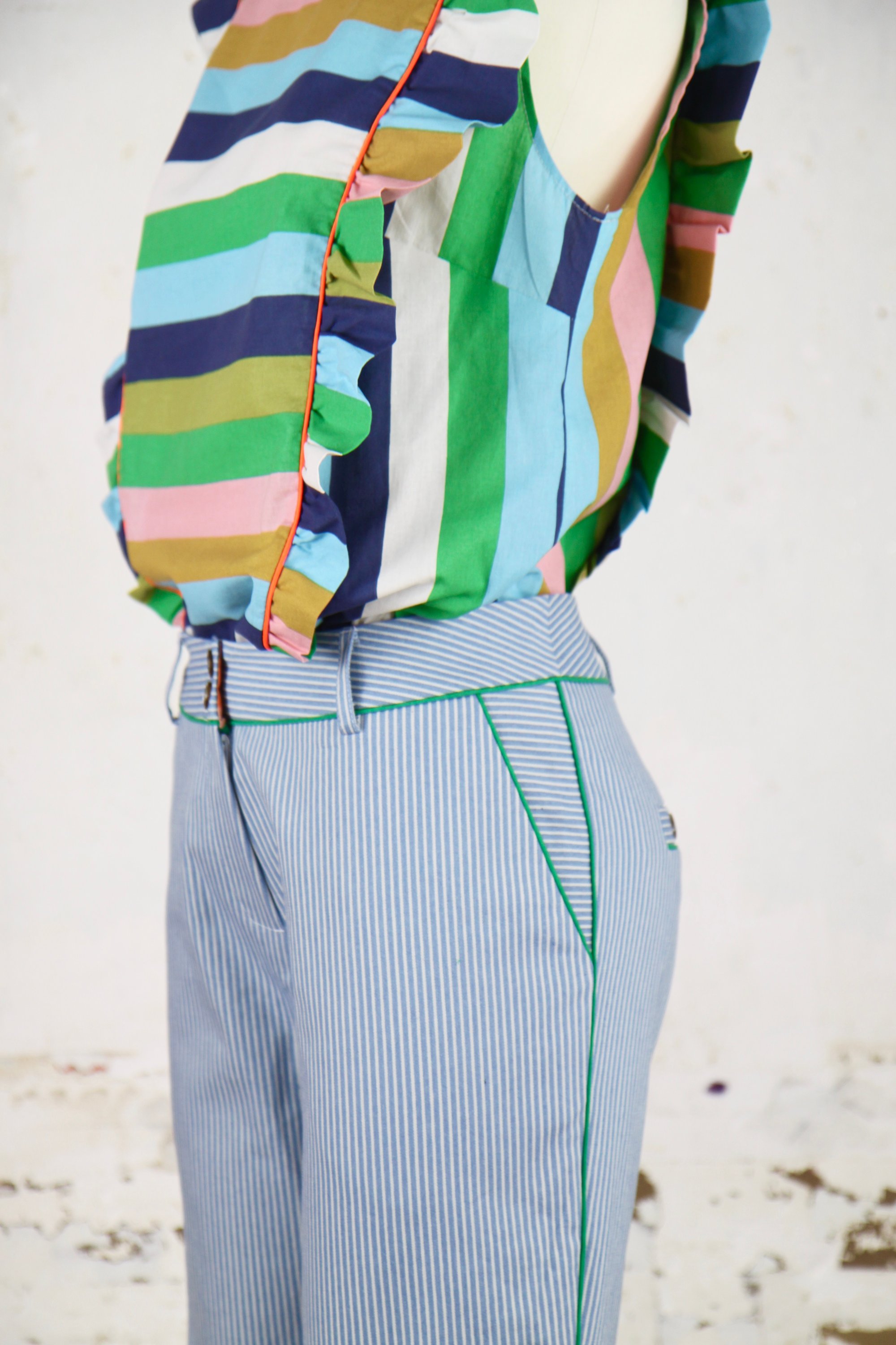 Découpes soulignées de passepoil de coton vert