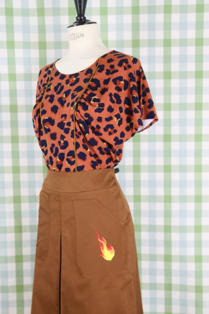 C'est un modèle qui se porte plutôt taille haute, légèrement évasée.
