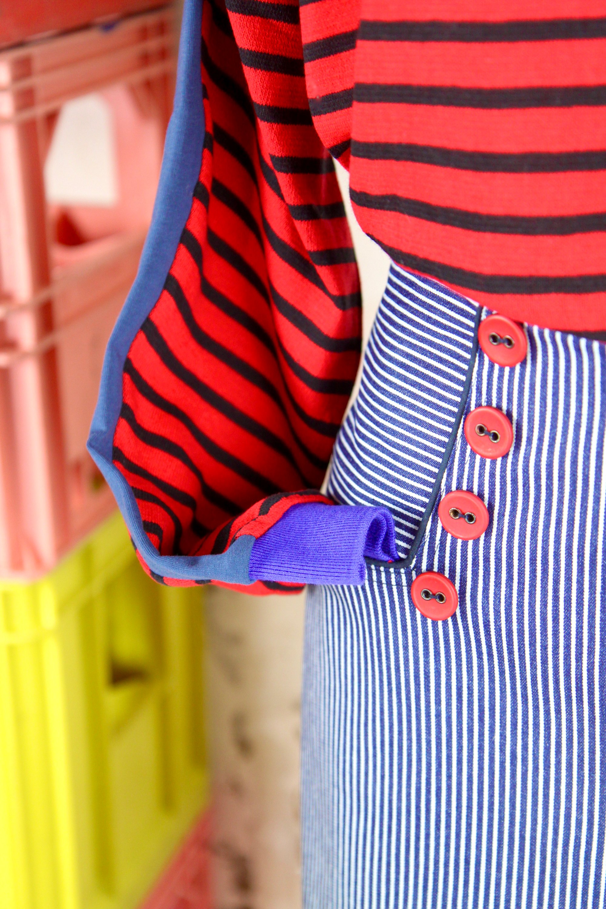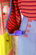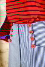 Découpes soulignées de passepoil de coton marine