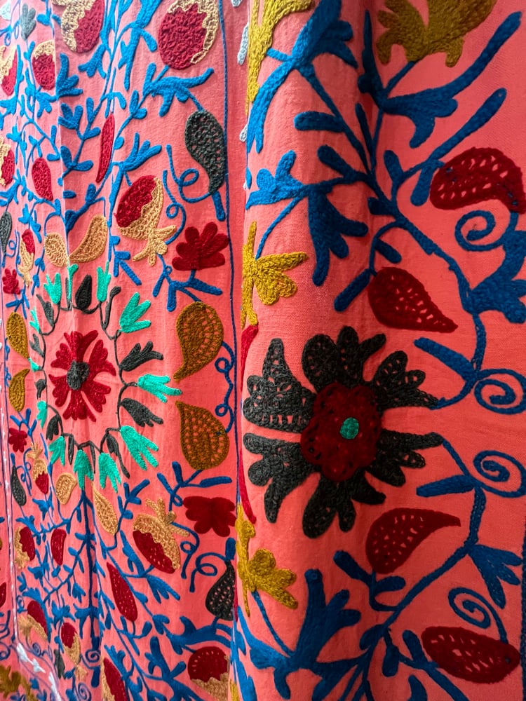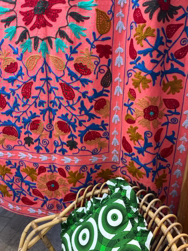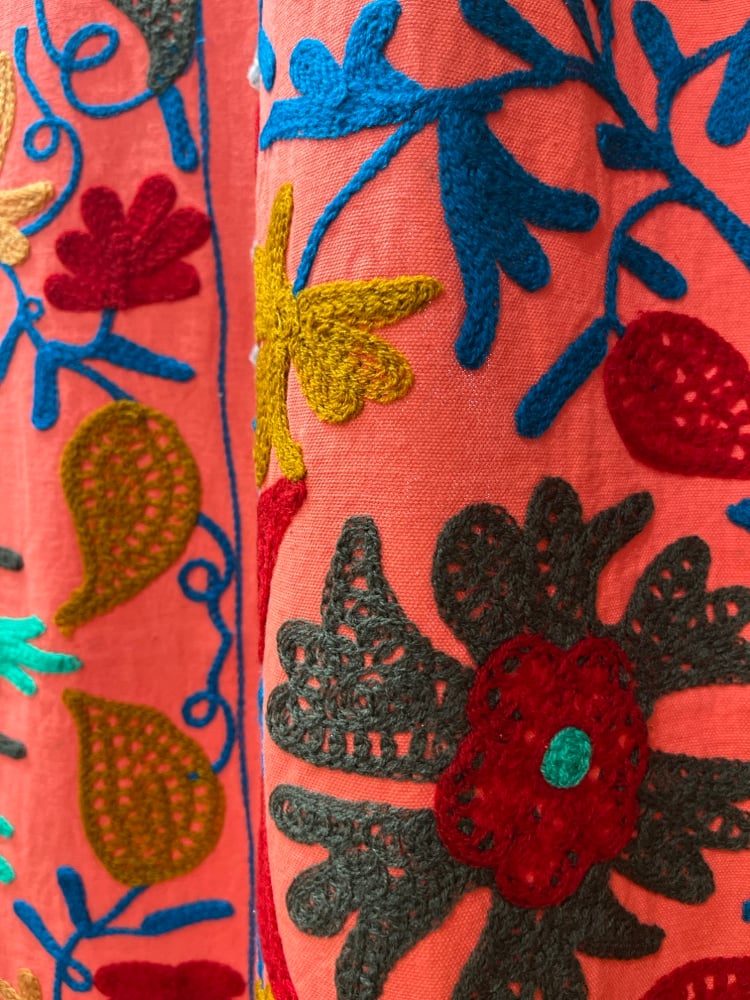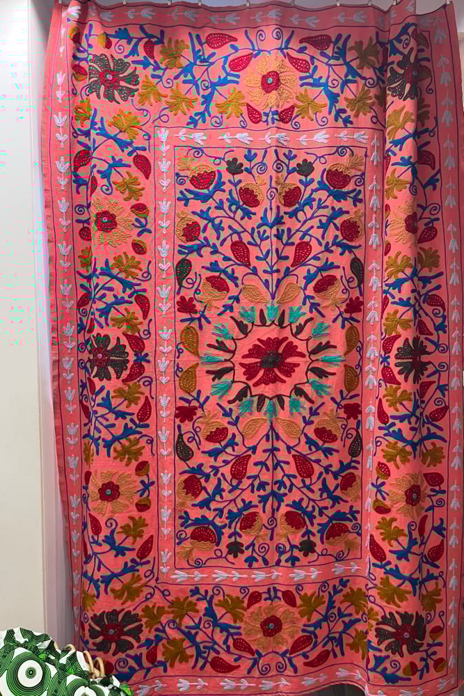 Plaid ou couverture de coton brodé de fil de coton épais, en relief en Inde.
